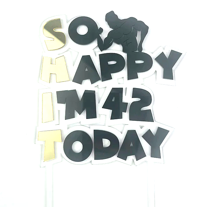 Celebrate with laughs and muscles! This bold cake topper is perfect for fitness lovers with a great sense of humor. Featuring a flexing figure and playful typography that reads “So Happy I’m 42 Today” (with a cheeky highlight), it’s the ultimate statement piece for birthday cakes.