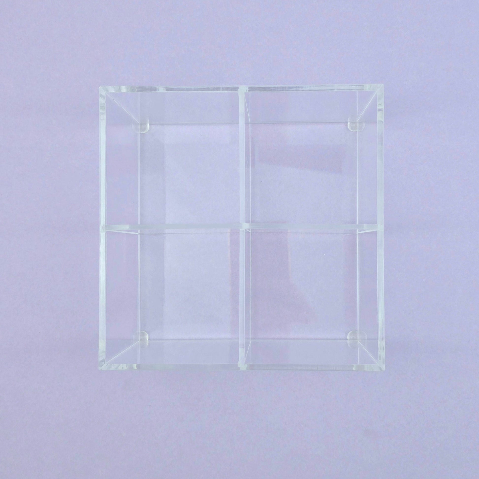The transparent plexiglass body makes it modern and sleek, while the removable cross separators allow for flexible storage options. Whether used as a jewelry organizer or a keepsake box, it’s both functional and decorative!